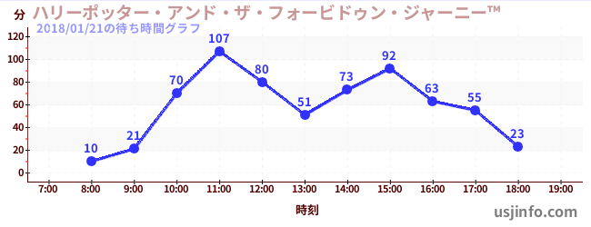 • ハリーポッター・アンド・ザ・フォービドゥン・ジャーニー™$B$N(B2018年01月21日の待ち時間