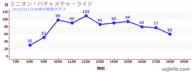 • ミニオン・ハチャメチャ・ライド$B$N(B2018年01月21日の待ち時間