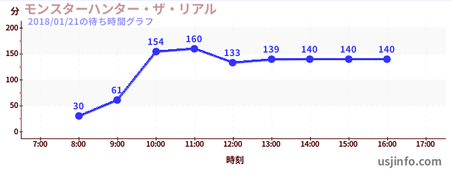 • モンスターハンター・ザ・リアル$B$N(B2018年01月21日の待ち時間