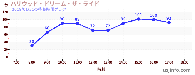 • ハリウッド・ドリーム・ザ・ライド$B$N(B2018年01月21日の待ち時間