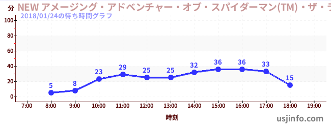 • NEW アメージング・アドベンチャー・オブ・スパイダーマン(TM)・ザ・ライド 4K3D$B$N(B2018年01月24日の待ち時間