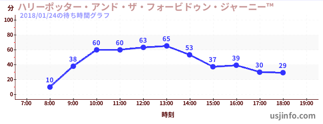 • ハリーポッター・アンド・ザ・フォービドゥン・ジャーニー™$B$N(B2018年01月24日の待ち時間
