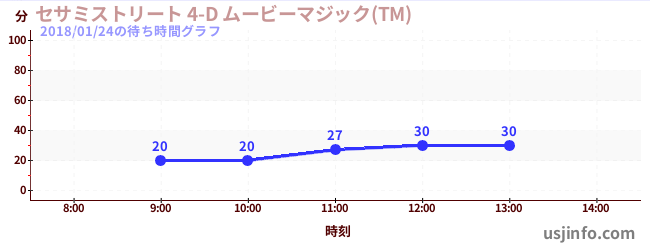 • セサミストリート 4-D ムービーマジック(TM)$B$N(B2018年01月24日の待ち時間