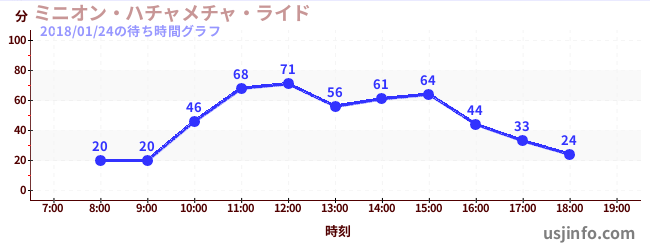 • ミニオン・ハチャメチャ・ライド$B$N(B2018年01月24日の待ち時間
