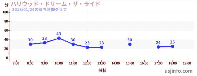 • ハリウッド・ドリーム・ザ・ライド$B$N(B2018年01月24日の待ち時間