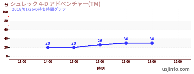 • シュレック 4-D アドベンチャー(TM)$B$N(B2018年01月26日の待ち時間