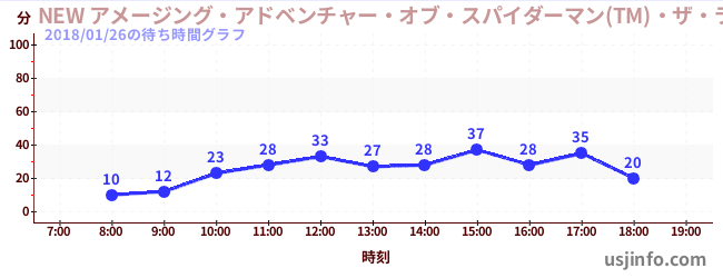 • NEW アメージング・アドベンチャー・オブ・スパイダーマン(TM)・ザ・ライド 4K3D$B$N(B2018年01月26日の待ち時間