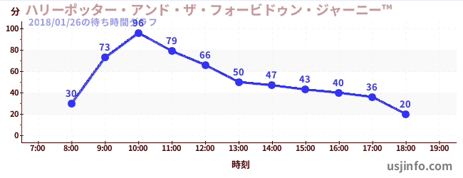 • ハリーポッター・アンド・ザ・フォービドゥン・ジャーニー™$B$N(B2018年01月26日の待ち時間