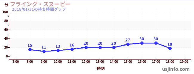 • フライング・スヌーピー$B$N(B2018年01月31日の待ち時間
