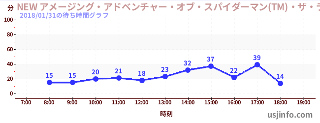 • NEW アメージング・アドベンチャー・オブ・スパイダーマン(TM)・ザ・ライド 4K3D$B$N(B2018年01月31日の待ち時間