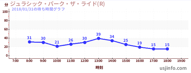 • ジュラシック・パーク・ザ・ライド(R)$B$N(B2018年01月31日の待ち時間