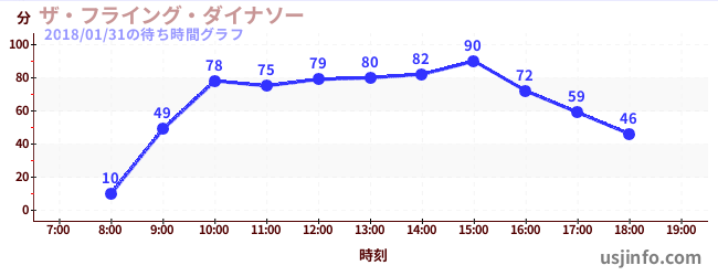 • ザ・フライング・ダイナソー$B$N(B2018年01月31日の待ち時間