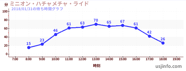 • ミニオン・ハチャメチャ・ライド$B$N(B2018年01月31日の待ち時間