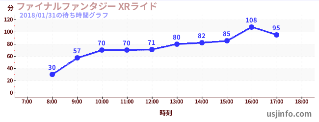 • ファイナルファンタジー XRライド$B$N(B2018年01月31日の待ち時間
