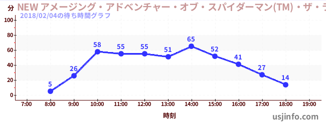 • NEW アメージング・アドベンチャー・オブ・スパイダーマン(TM)・ザ・ライド 4K3D$B$N(B2018年02月04日の待ち時間