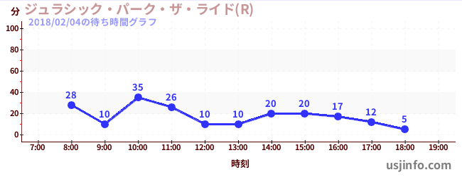 • ジュラシック・パーク・ザ・ライド(R)$B$N(B2018年02月04日の待ち時間