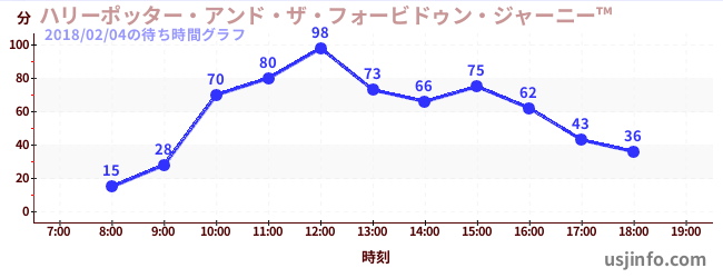 • ハリーポッター・アンド・ザ・フォービドゥン・ジャーニー™$B$N(B2018年02月04日の待ち時間
