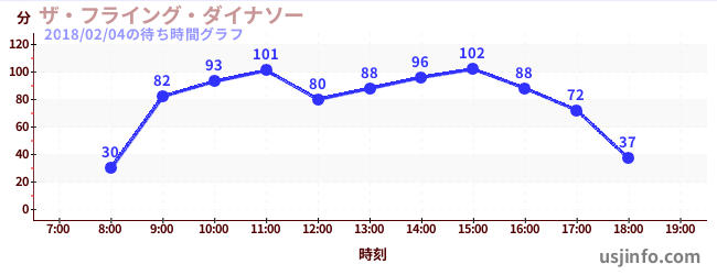 • ザ・フライング・ダイナソー$B$N(B2018年02月04日の待ち時間