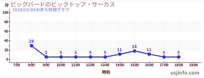• ビッグバードのビックトップ・サーカス$B$N(B2018年02月04日の待ち時間