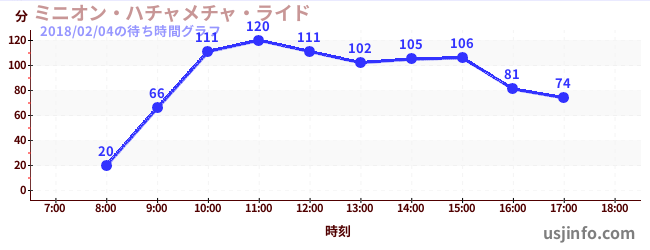 • ミニオン・ハチャメチャ・ライド$B$N(B2018年02月04日の待ち時間