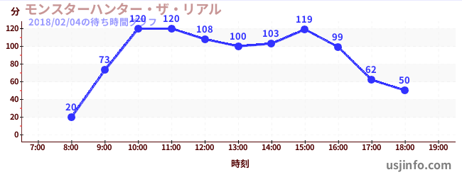 • モンスターハンター・ザ・リアル$B$N(B2018年02月04日の待ち時間