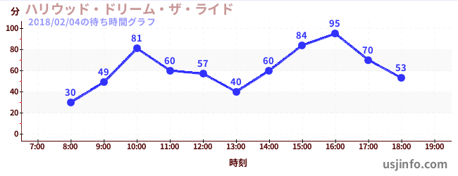 • ハリウッド・ドリーム・ザ・ライド$B$N(B2018年02月04日の待ち時間