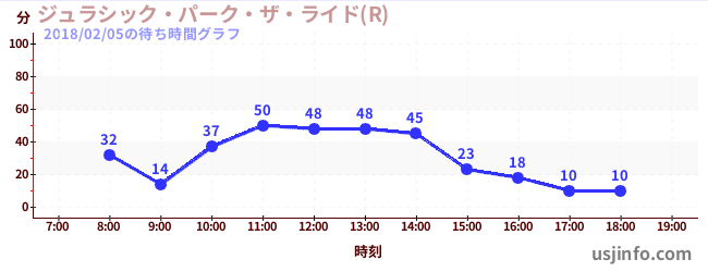 • ジュラシック・パーク・ザ・ライド(R)$B$N(B2018年02月05日の待ち時間