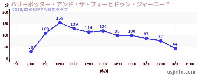 • ハリーポッター・アンド・ザ・フォービドゥン・ジャーニー™$B$N(B2018年02月05日の待ち時間