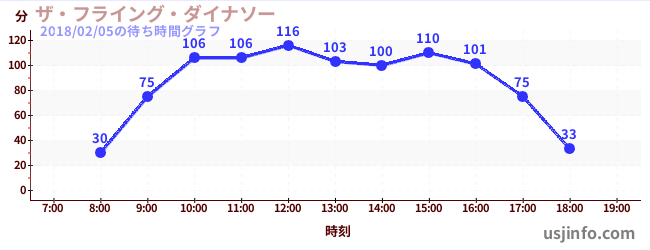 • ザ・フライング・ダイナソー$B$N(B2018年02月05日の待ち時間
