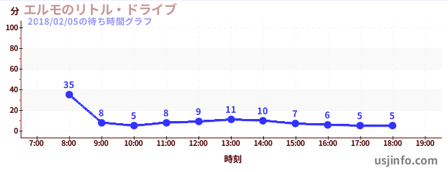• エルモのリトル・ドライブ$B$N(B2018年02月05日の待ち時間