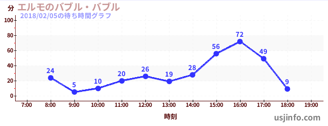 • エルモのバブル・バブル$B$N(B2018年02月05日の待ち時間
