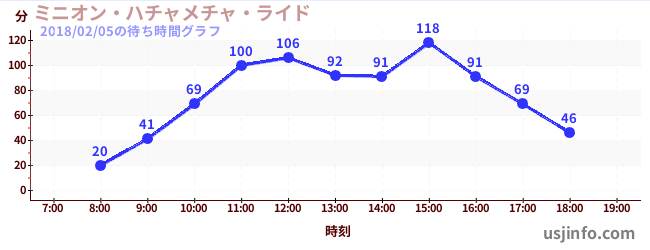 • ミニオン・ハチャメチャ・ライド$B$N(B2018年02月05日の待ち時間