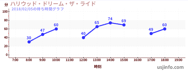 • ハリウッド・ドリーム・ザ・ライド$B$N(B2018年02月05日の待ち時間