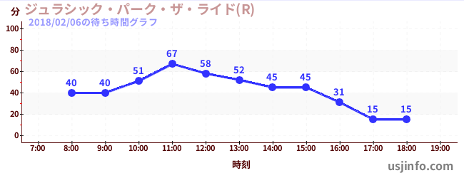 • ジュラシック・パーク・ザ・ライド(R)$B$N(B2018年02月06日の待ち時間