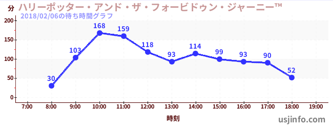 • ハリーポッター・アンド・ザ・フォービドゥン・ジャーニー™$B$N(B2018年02月06日の待ち時間
