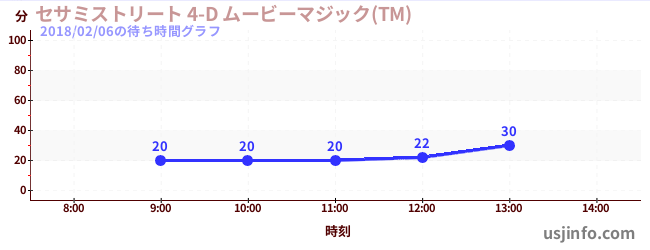 • セサミストリート 4-D ムービーマジック(TM)$B$N(B2018年02月06日の待ち時間