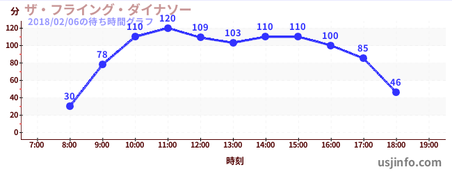 • ザ・フライング・ダイナソー$B$N(B2018年02月06日の待ち時間