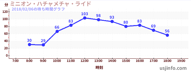 • ミニオン・ハチャメチャ・ライド$B$N(B2018年02月06日の待ち時間