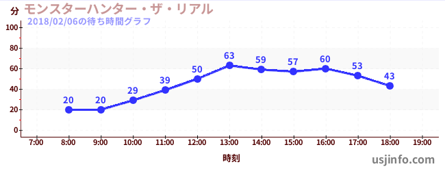 • モンスターハンター・ザ・リアル$B$N(B2018年02月06日の待ち時間