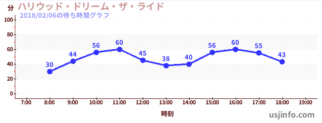 • ハリウッド・ドリーム・ザ・ライド$B$N(B2018年02月06日の待ち時間