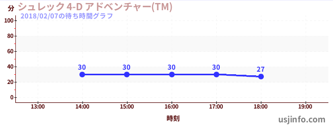 • シュレック 4-D アドベンチャー(TM)$B$N(B2018年02月07日の待ち時間