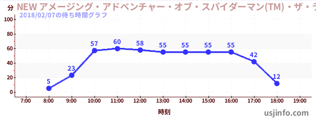 • NEW アメージング・アドベンチャー・オブ・スパイダーマン(TM)・ザ・ライド 4K3D$B$N(B2018年02月07日の待ち時間