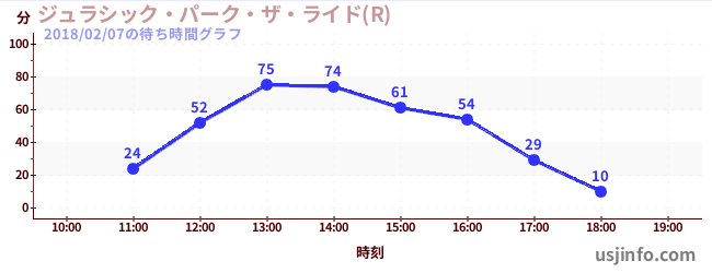 • ジュラシック・パーク・ザ・ライド(R)$B$N(B2018年02月07日の待ち時間