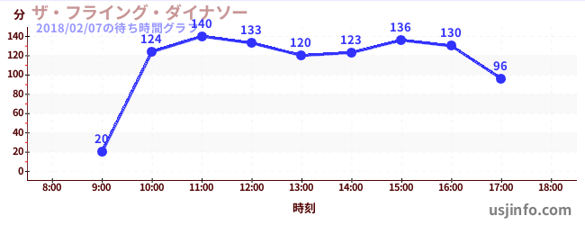 • ザ・フライング・ダイナソー$B$N(B2018年02月07日の待ち時間