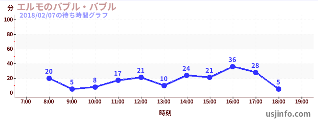 • エルモのバブル・バブル$B$N(B2018年02月07日の待ち時間