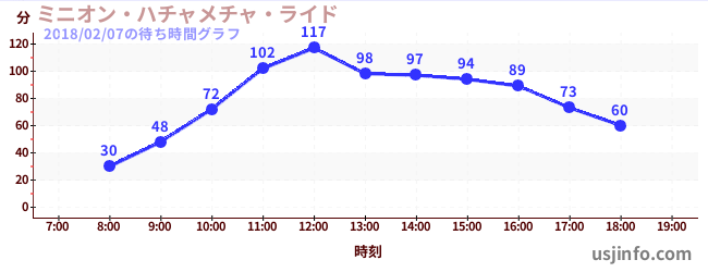 • ミニオン・ハチャメチャ・ライド$B$N(B2018年02月07日の待ち時間