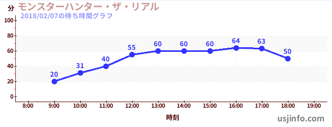 • モンスターハンター・ザ・リアル$B$N(B2018年02月07日の待ち時間