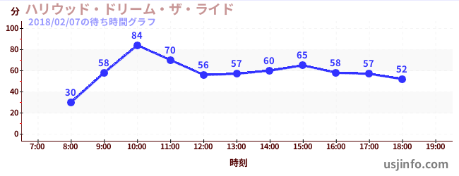 • ハリウッド・ドリーム・ザ・ライド$B$N(B2018年02月07日の待ち時間