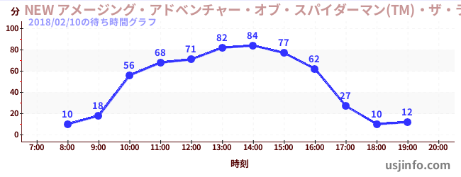 • NEW アメージング・アドベンチャー・オブ・スパイダーマン(TM)・ザ・ライド 4K3D$B$N(B2018年02月10日の待ち時間