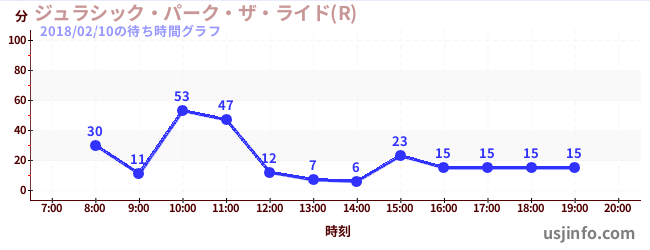 • ジュラシック・パーク・ザ・ライド(R)$B$N(B2018年02月10日の待ち時間